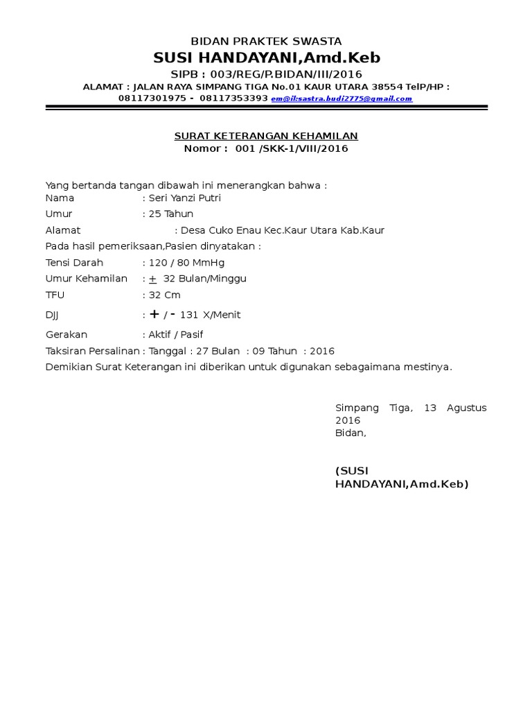 Contoh Surat Keterangan Hamil Dari Bidan / Contoh Surat Keterangan Dokter Tentang Kehamilan Contoh Surat / Ngis, desa tembok, kecamatan tejakula, buleleng.
