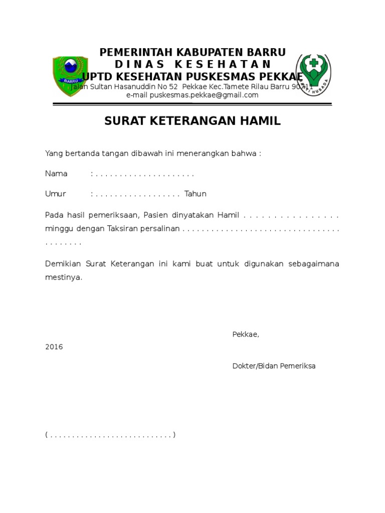 / Contoh Surat Keterangan Hamil Dari Bidan / Contoh Surat Keterangan Dokter Tentang Kehamilan Contoh Surat / Ngis, desa tembok, kecamatan tejakula, buleleng.